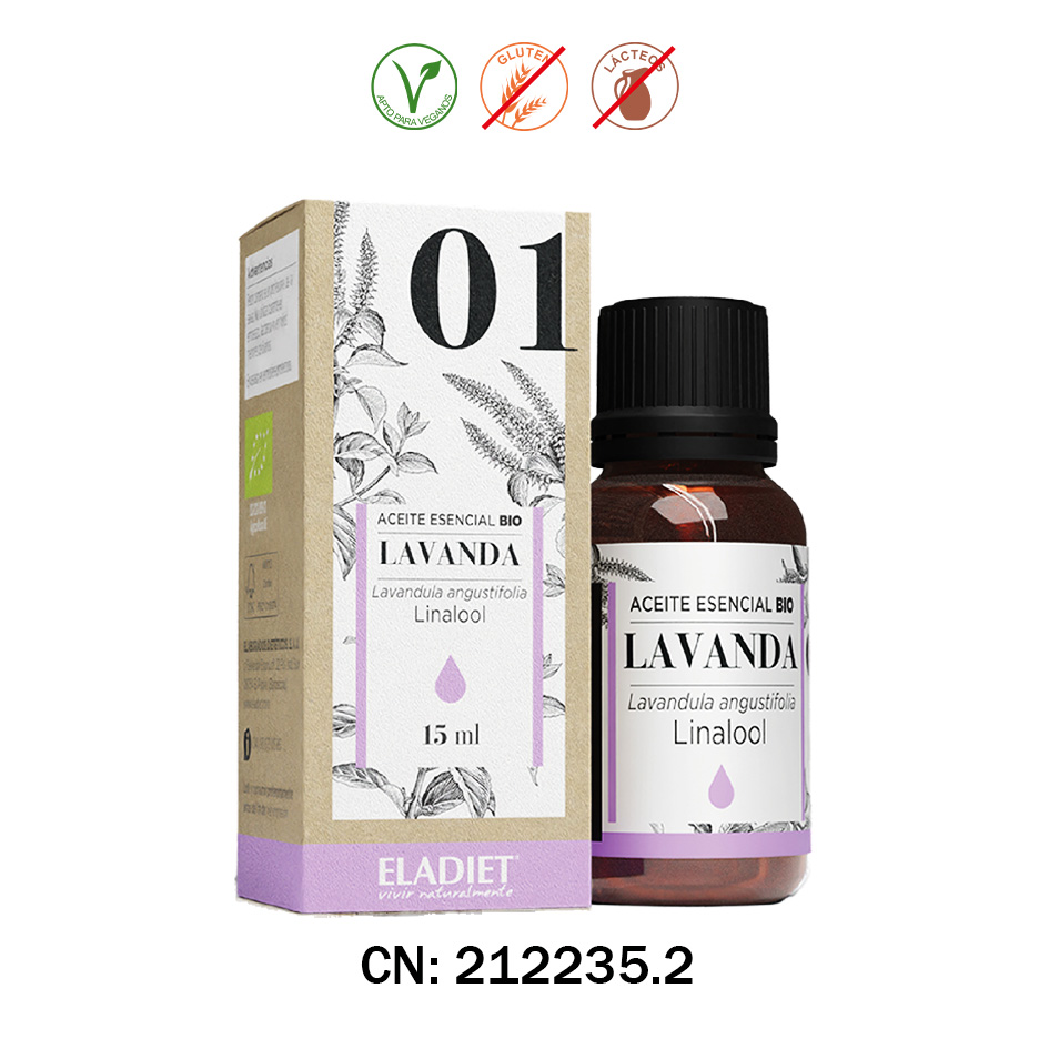 100% Aceite esencial de Lavanda* (Lavandula angustifolia Mill.). *Procedente de agricultura ecológica.