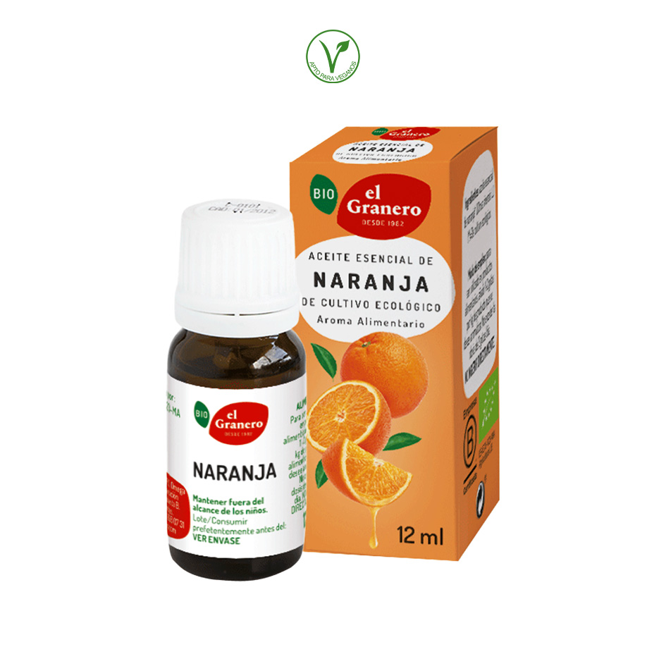 aceite esencial de naranja* (Citrus sinensis L.). *= Procedente de agricultura ecológica.