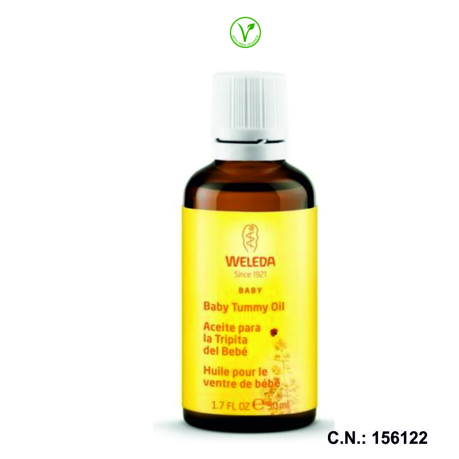 CN: 156122 • Calentar el aceite entre las palmas de las manos y masajear suavemente en el sentido de las agujas del reloj haciendo una espiral desde el ombligo hacia afuera, terminando en la pierna izquierda del bebé. Durante el masaje ejercer una ligera presión con la mano.