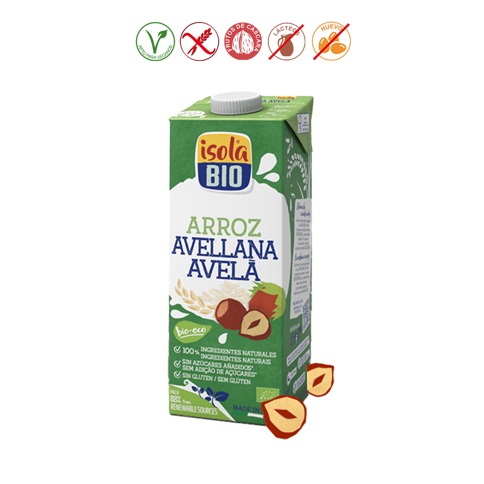 agua, arroz*(17%), AVELLANAS*(3%), sal marina. *= Procedente de agricultura ecológica.