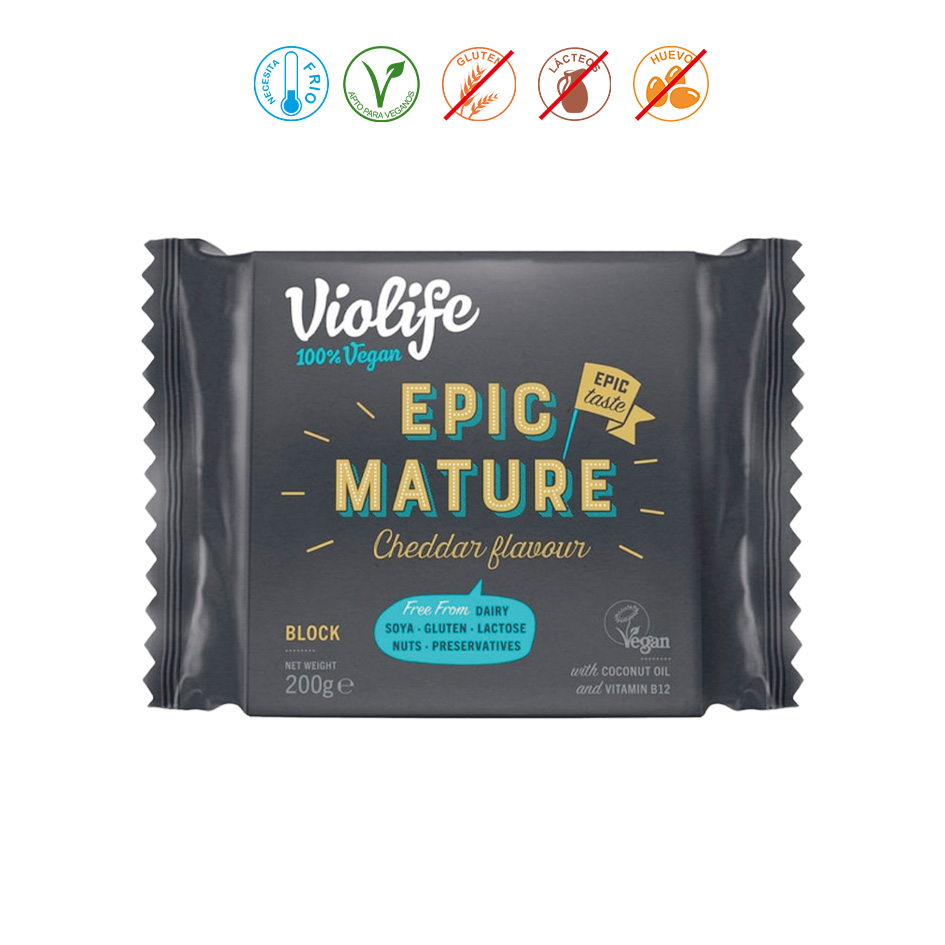BLOQUE VEGANO CHEDDAR CURADO EPIC – 200GR.
