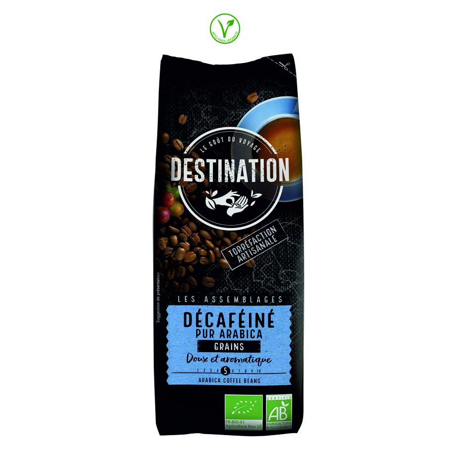 café* descafeinado puro arábica en grano ecológico de tueste natural.