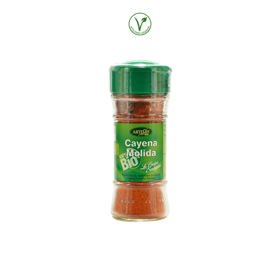 Pimienta cayena* molida. *= Procedente de agricultura ecológica.