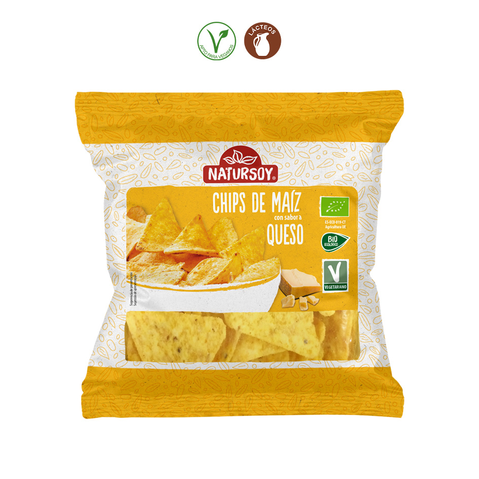 Maíz*, aceite de GIRASOL*, aroma con sabor a QUESO (maltodextrina*, QUESO cheddar en polvo*, sal, aromas naturales, cebolla*, extracto de levadura). *= Procedente de agricultura ecológica.