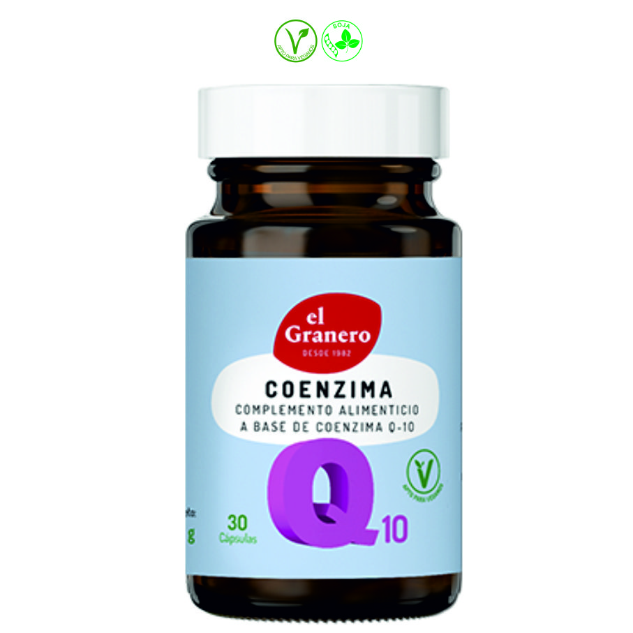lecitina de semillas de SOJA (Glycine max L.), aceite de semillas de soja (Glycine max L.), con un 30% de lecitina, Ubiquinona* (Coenzima Q-10), colorante dióxido de titanio. Cubierta de la cápsula: hidroxipropilmetilcelulosa. *= Procedente de agricultura ecológica.