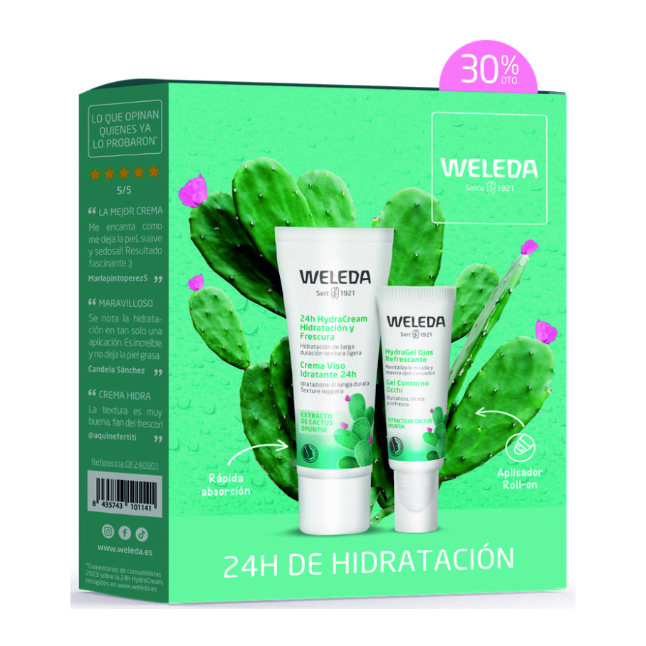 Contiene: 1xWE26456 Hydragel Ojos Refrescante ext. Cactus -10ml • 1xWE23219 Hydracream 24H Hidratación y frescura Ext. Cactus – 30ml.
