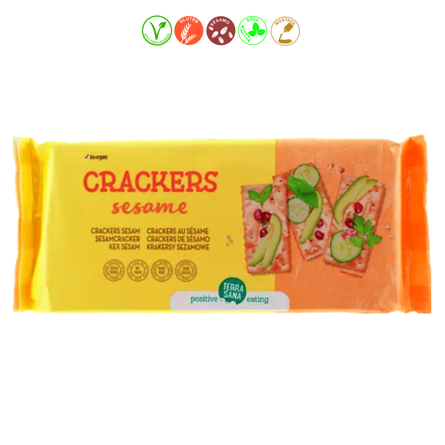 Harina de TRIGO*, aceite de oliva virgen extra* (9,6%), salvado de TRIGO*, semillas de SÉSAMO* (2,8%), sal, regulador de la acidez: (bicarbonato sódico), sirope de arroz* y CEBADA*, masa madre (contiene TRIGO y CEBADA), harina de CEBADA mateada, antioxidante: (extracto de romero). *= Procedente de agricultura ecológica.