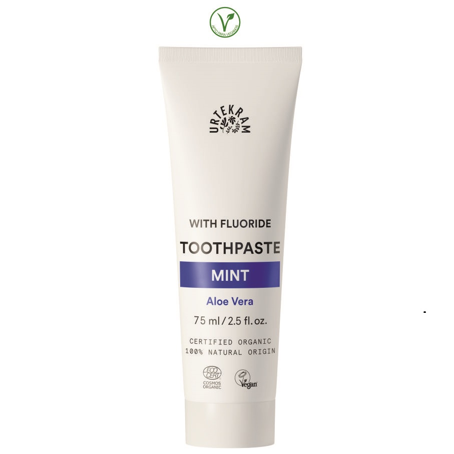 INCI: Calcium carbonate, aqua, glycerin**, xylitol, Aloe barbadensis leaf extract*, hydrated silica, xanthan gum, Mentha piperita oil*, Mentha arvensis leaf oil*, menthol*, Mentha viridis leaf oil*, sodium flouride, Commiphora myrrha oil, Magnolia officinalis bark extract, limonene. *De agricultura biológica. **Hecho usando ingredientes biológicos.