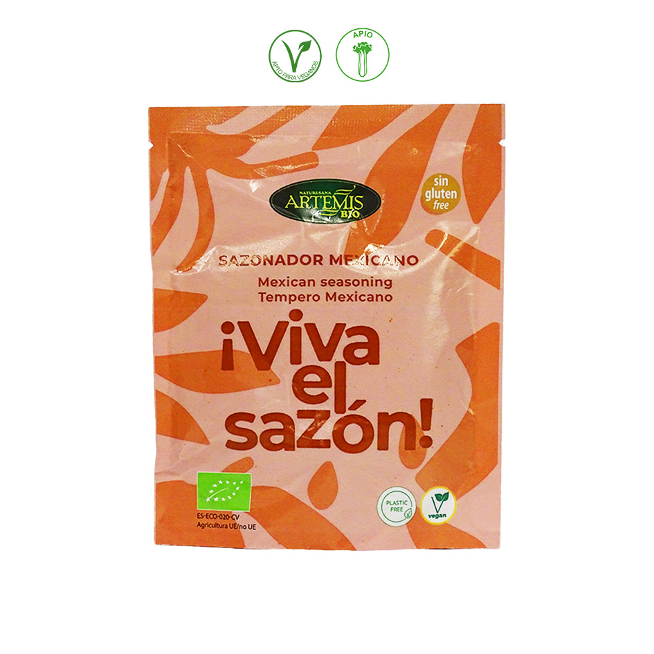 Sal marina, Pimentón dulce*, Cilantro*, Ajo*, Cebolla*, Limón*, Cayena*, Levadura nutricional*. *= Procedente de agricultura ecológica.