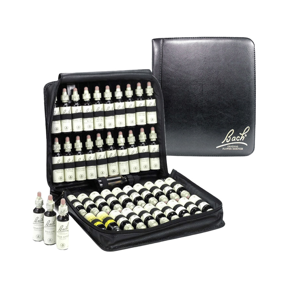 El estuche de piel, compuesto por 38 flores de Bach + 2 Bach rescate gotero de 20ml.