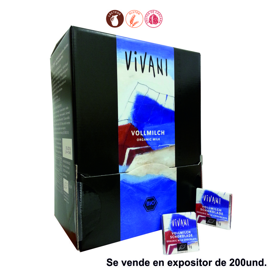 Azúcar integral de caña*, manteca de cacao*, LECHE entera en polvo*, pasta de cacao*, NATA en polvo*, LECHE desnatada en polvo*, extracto de vainilla bourbon*. *=de Cultivo Ecológico Certificado.