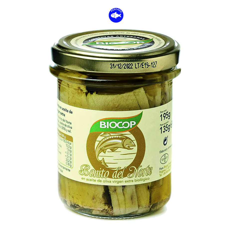 BONITO DEL NORTE (PESCADO), aceite de oliva virgen extra*, sal. *= Procedente de agricultura ecológica.