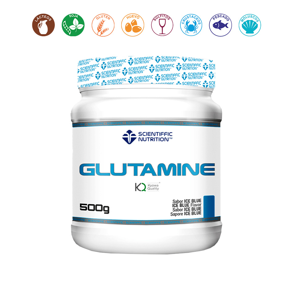 INCI: L-Glutamina Kyowa Quality®, Aromas, Acidulante (Ácido Cítrico), Edulcorante (Sucralosa) y Colorante (E-133) º Contenido medio por 10 gr • L- Glutamina · 9,41 gr