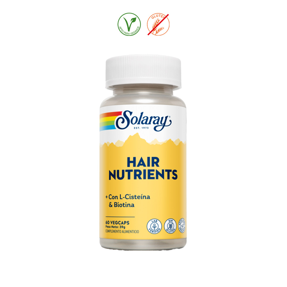 Vitamina C (ácido ascórbico), ácido pantoténico, cápsula de celulosa vegetal, L-cisteína, colina bitartrato, inositol, agente de carga: celulosa vegetal, arroz integral, vitamina B2 (riboflavina), PABA, vitamina B6 (piridoxina HCl), niacinamida, vitamina B1 (tiamina mononitrato), zinc (quelado), hierro (quelado), manganeso (quelado), antiaglomerante: estearato de magnesio, sílice, alfalfa (hojas de Mendicago sativa), perejil (hojas de Petroselinum crispum), berro (hoja Nasturturium officinale), vitamina A (aceite de hígado de [PESCADO]), biotina, ácido fólico. º Contenido medio por cápsula: • Vitamina C (ácido ascórbico) · 100mg. · 125%VRN • Ácido pantoténico · 100mg. · 1666,6%VRN • L-cisteína · 50mg. • Colina bitartrato · 50mg. • Inositol · 50mg. • Vitamina B2 (riboflavina) · 25mg. · 3571,4%VRN • PABA · 25mg. • Vitamina B6 (piridoxina HCl) · 12mg. · 857%VRN • Vitamina B3 (Niacinamida) · 10mg · 62,5%VRN • Vitamina B1 (tiamina mononitrato) · 7,5mg. · 681,8%VRN • Zinc (quelado) · 5mg. · 50%VRN • Hierro (quelado) · 4mg. · 28,6%VRN • Manganeso (quelado) · 2,5mg. · 125%VRN • Vitamina A (aceite de hígado de [PESCADO]) · 0,75mg. · 93,7%VRN • Biotina · 500µg. · 1000%VRN • Ácido fólico · 200µg. · 100%VRN.