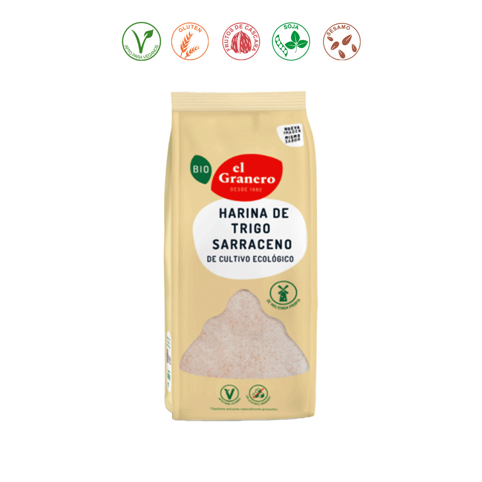 harina integral de trigo sarraceno*. *= Procedente de agricultura ecológica.