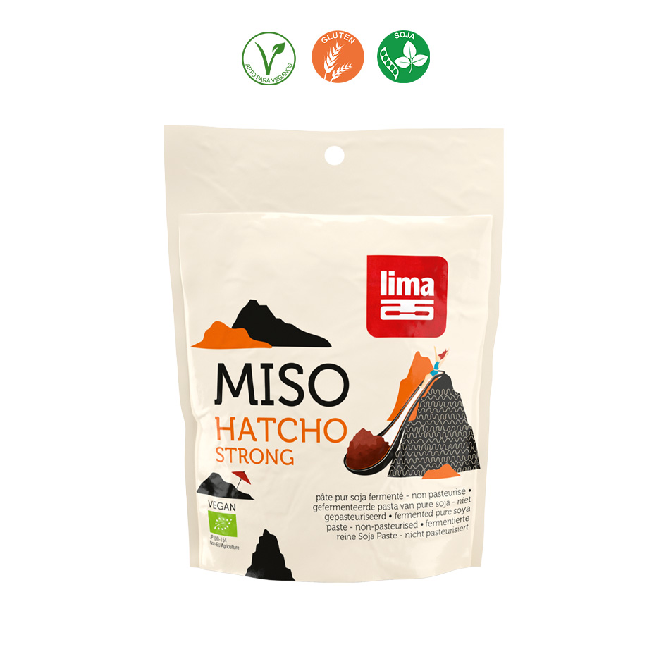 Habas de SOJA* 65% , agua, sal marina, harina de CEBADA* tostada , koji (Aspergillus oryzae) = * Cultivo orgánico