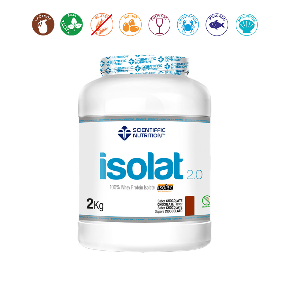 INCI: Aislado de Proteína de Suero de LECHE 90% Isolac® (Emulgente – Lecitina de SOJA) (89,5%), Cacao en Polvo, Aroma, Lactasa 10.000 FCC-ALU/g (B-Galactosidasa) (0,2%), Edulcorante (Sucralosa) y Cloruro de Sodio. º Contenido medio por 100 GR • VALOR NUTRICIONAL • Valor Energético · 1480,22kJ=354,12Kcal • Grasas · 1,65g • de las cuales saturadas · 0,29g • Hidratos de Carbono · 2,32g • de los cuales azúcares · 0,99g • Proteínas · 82,03g • Sal · 0,5g • PROTEÍNAS • Aislado de Proteína de Suero de LECHE 90% Isolac® · 89,5g • AMINOÁCIDO • L-ALANINA · 4,14g • L-ARGININA · 1,49g • ACIDO L-ASPÁRTICO · 8,37g • ACIDO L-GLUTÁMICO · 14,29g • CISTEINA · 1,87g • FENILALANINA · 2,21g • GLICINA · 1,19g • HISTIDINA · 1,22g • ISOLEUCINA · 5,73g • LEUCINA · 7,79g • LISINA · 7,69g • METIONINA · 1,7g • PROLINA · 4,77g • SERINA · 3,91g • TIROSINA · 2,11g • TREONINA · 5,58g • TRIPTÓFANO · 1,26g • VALINA · 5,23g • ENZIMAS • Lactasa (B-Galactosidasa) · 0,2g • Contenido medio por 50 GR • VALOR NUTRICIONAL • Valor Energético · 740,12kJ=177,06Kcal • Grasas · 0,82g • de las cuales saturadas · 0,65g • Hidratos de Carbono · 1,16g • de los cuales azúcares · 0,50g • Proteínas · 41,02g • Sal · 0,25g • PROTEÍNAS • Aislado de Proteína de Suero de LECHE 90% Isolac® · 44,75g • ENZIMAS • Lactasa (B-Galactosidasa) · 0,1g