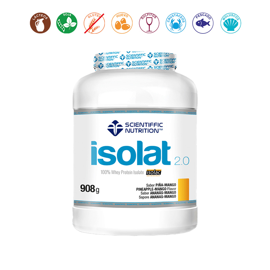 INCI: Aisladode Proteína de Suero de LECHE 90% Isolac® (Emulgente – Lecitina de SOJA) (97,14%), Aromas, Lactasa 10.000 FCC-ALU/g (_-Galactosidasa) (0,2%), Edulcorante (Sucralosa) y Colorante (E-160aii). º Contenido medio por 100 GR • VALOR NUTRICIONAL • Valor Energético · 1549,36kJ=370,66Kcal • Grasas · 0,98g • de las cuales saturadas · 0,98g • Hidratos de Carbono · 3,03g • de los cuales azúcares · 1,03g • Proteínas · 87,43g • Sal · 0,36g • PROTEÍNAS • Aislado de Proteína de Suero de LECHE 90% Isolac® · 97,14g • AMINOÁCIDO • L-ALANINA · 4,49g • L-ARGININA · 1,62g • ACIDO L-ASPÁRTICO · 9,08g • ACIDO L-GLUTÁMICO · 15,51g • CISTEINA · 2,03g • FENILALANINA · 2,4g • GLICINA · 1,29g • HISTIDINA · 1,32g • ISOLEUCINA · 6,22g • LEUCINA · 8,45g • LISINA · 8,35g • METIONINA · 1,84g • PROLINA · 5,18g • SERINA · 4,25g • TIROSINA · 2,29g • TREONINA · 6,06g • TRIPTÓFANO · 1,37g • VALINA · 5,67g • ENZIMAS • Lactasa (B-Galactosidasa) · 0,2g • Contenido medio por 50 GR • VALOR NUTRICIONAL • Valor Energético · 774,68kJ=185,33Kcal • Grasas · 0,49g • de las cuales saturadas · 0,49g • Hidratos de Carbono · 1,51g • de los cuales azúcares · 0,52g • Proteínas · 43,71g • Sal · 0,18g • PROTEÍNAS • Aislado de Proteína de Suero de LECHE 90% Isolac® · 48,57g • ENZIMAS • Lactasa (B-Galactosidasa) · 0,1g