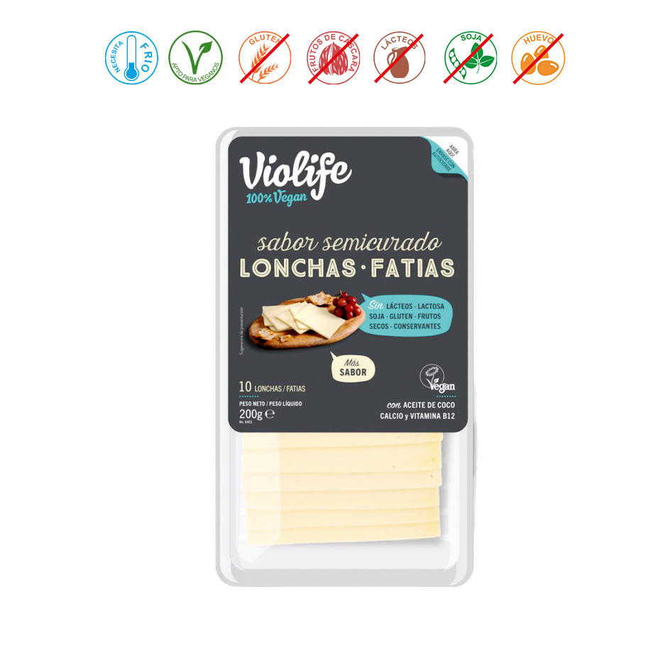 agua, aceite de coco 26%, almidón modificado, almidón, sal marina, fosfato de calcio, proteína de lentejas, aromas, extracto de aceituna, color: caroteno B, vitamina B12.
