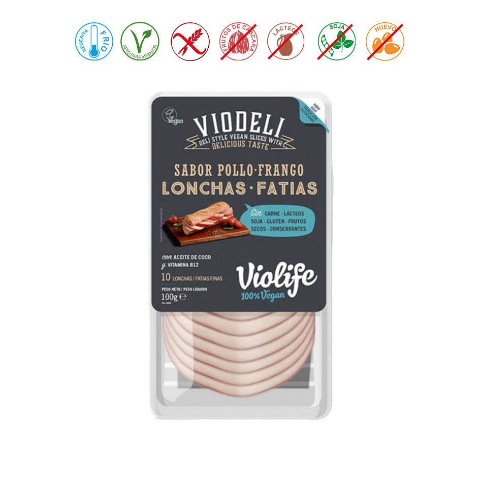 agua, aceite de coco(21%), almidón modificado (no transgénico), almidón de cebada (sin gluten), sal marina, zumo concentrado de manzana, semillas de girasol molidas, esencias saborizantes de pollo, corrector de acidez: ácido cítrico, extracto de aceituna, colorantes: concentrados de frutas y vegetales (paprika, zanahoria, rábano, manzana y grosella negra), vitamina B12.