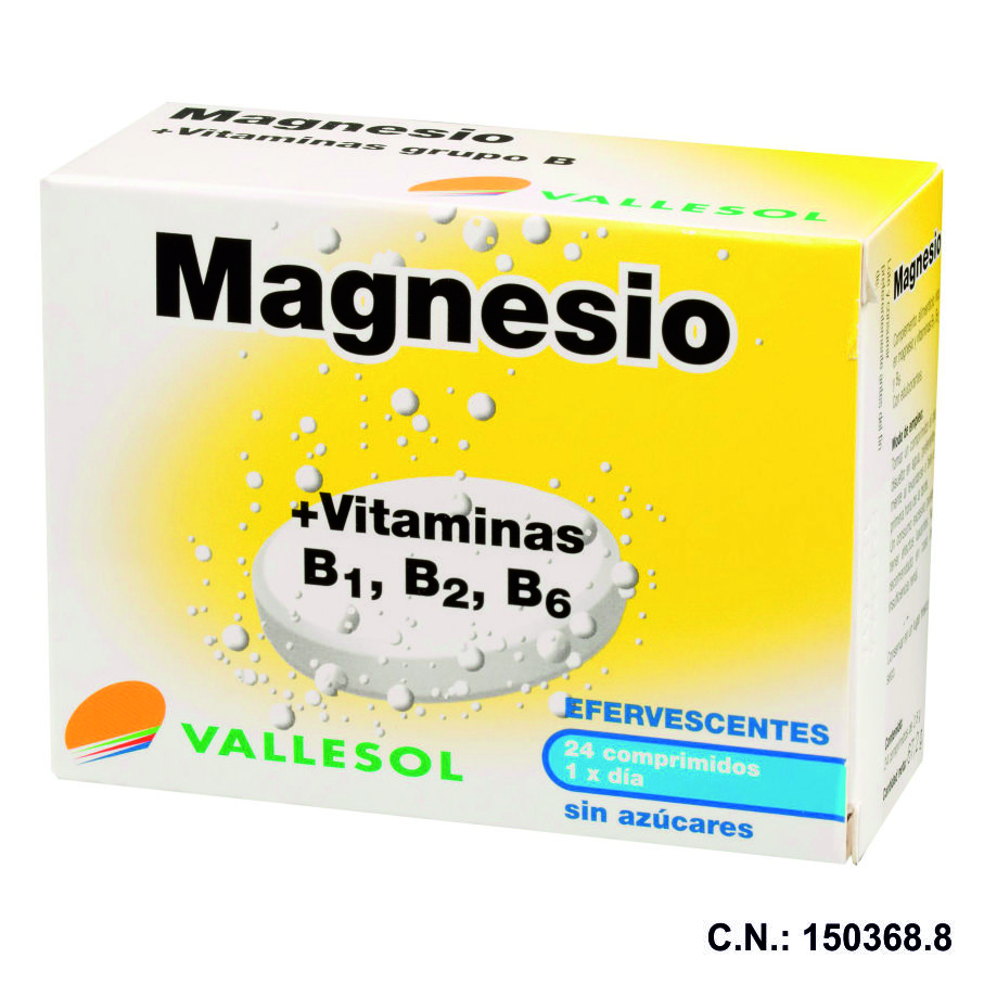 º Contenido por 1 comprimido efervescente : • Magnesio (óxido) · 300mg · 80%VRN • Vitamina B1 · 1,1mg · 100%VRN • Vitamina B2 · 1,4mg · 100%VRN • Vitamina B6 · 1,4mg · 100%VRN • edulcorantes: (sorbitol, sacarina sódica, acesulfamo potásico), acidificante: (ácido cítrico), corrector de acide:z (bicarbonato de sodio), agente de carga: (polietilenglicol), aroma de naranja.