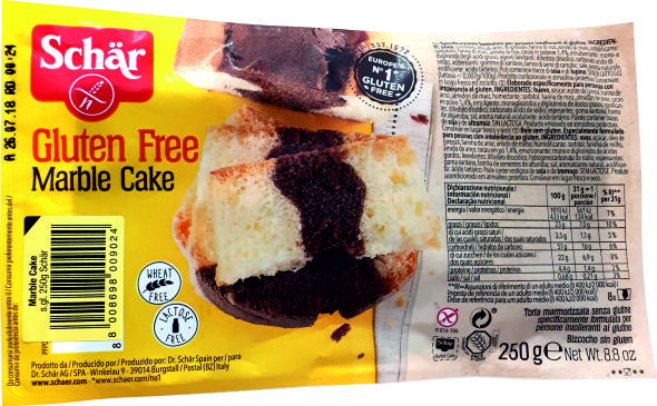 Huevo, azúcar, aceite de girasol, harina de arroz, almidón de maíz, humectante: (sorbitol), harina de maíz, almidón de arroz, cacao en polvo(1,4%), emulgente: (mono- y diglicéridos de ácidos grasos), gasificantes: (difosfato disódico, carbonato ácido de sodio), espesante: (goma xantana, harina de algarroba), sal, aroma natural, acidulantes: (ácido tartárico).