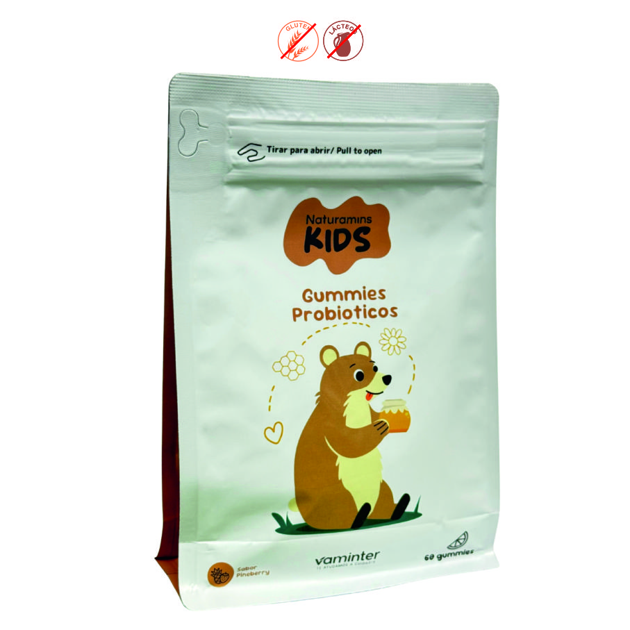 Azúcar de caña*, sirope de glucosa*, concentrado natural de manzana, pectina, fermentos naturales lácticos (Bacillus coagulans), fibra guar parcialmente hidrolizada, regulador de acidez: ácido cítrico; aroma natural, color natural, recubrimiento: cera de carnauba. *Procedente de agricultura ecológica