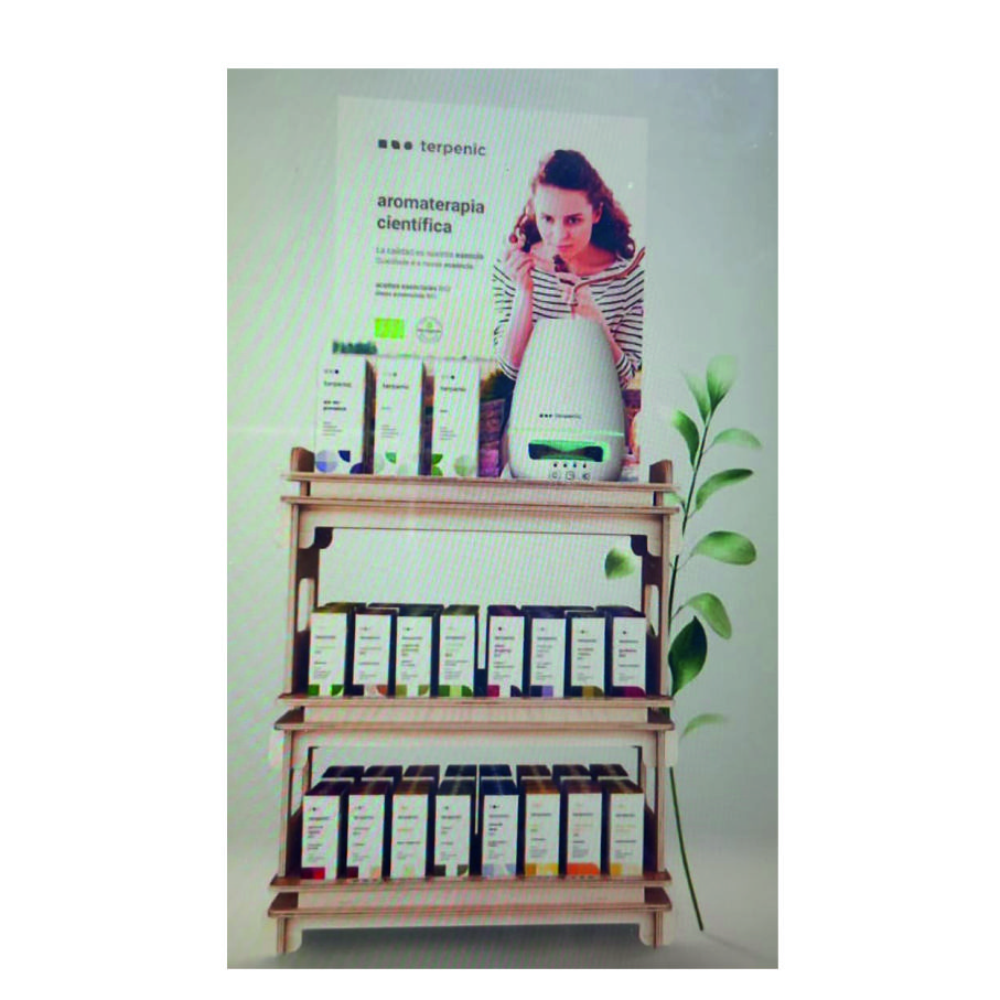 Contiene : • 3x EUCALIPTO RADIATA ACEITE ESENCIAL – BIO (ECO) – 10ML • 3x MENTA CAMPO ACEITE ESENCIAL BIO (ECO) – 10ML • 3x LIMON ACEITE ESENCIAL BIO (ECO) – 10ML • 3x SALVIA ESCLAREA ACEITE ESENCIAL – 10ML • 3x VERBENA EXOTICA ACEITE ESENCIAL BIO (ECO) – 10ML • 3x ROMERO ALCANFOR ACEITE ESENCIAL BIO (ECO) – 10ML • 3x NIAULI ACEITE ESENCIAL BIO (BI O) – 10ML • 3x ESPLIEGO MACHO ACEITE ESENCIAL BIO (ECO) – 10ML • 3x PETITGRAIN ACEITE ESENCIAL – BIO (ECO) – 10ML • 3x YLANG-YLANG COMPLETO ACEITE ESENCIAL BIO (ECO) – 5ML • 3x BERGAMOTA ACEITE ESENCIAL BIO (ECO) – 10ML • 3x MENTA PIPERITA ACEITE ESENCIAL BIO (ECO) – 5ML • 3x MANZANILLA ROMANA ACEITE ESENCIAL – 5ML • 3x MENTA PIPERITA ACEITE ESENCIAL BIO (ECO) – 5ML • 3x MANZANILLA ROMANA ACEITE ESENCIAL – 5ML • 3x LAUREL ACEITE ESENCIAL BIO (ECO) – 5ML • 3x MEJORANA TUYANOL ACEITE ESENCIAL BIO (ECO) – 5ML • 3x CIPRES DE PROVENZA ACEITE ESENCIAL BIO (ECO) – 5ML • 3x CITRONELA DE JAVA ACEITE ESENCIAL BIO (ECO) – 10ML • 3x GAULTERIA PROCUMBENS ACEITE ESENCIAL (BIO) – 10ML • 3x ROMERO CINEOL ACEITE ESENCIAL BIO (ECO) – 10ML • 3x CARDAMOMO ACEITE ESENCIAL BIO (ECO) – 5ML • 3x PINO SILVESTRE ACEITE ESENCIAL – BIO (ECO) – 10ML • 3x JENGIBRE ACEITE ESENCIAL BIO (ECO) – 5ML • 3x MANDARINA ROJA ACEITE ESENCIAL – BIO (ECO) – 10ML • 3x GERANIO EGIPTO ACEITE ESENCIAL BIO (ECO) – 10ML • 3x PALMAROSA ACEITE ESENCIAL BIO (ECO) – 10ML • 3x RAVINTSARA ACEITE ESENCIAL BIO (ECO) – 10ML • 3x LAVANDA VERA ACEITE ESENCIAL BIO (ECO) – 10ML • 3x INCIENSO ACEITE ESENCIAL BIO (ECO) – 5ML • 3x TOMILLO TUYANOL ACEITE ESENCIAL – 5ML • 3x SIEMPREVIVA AMARILLA ACEITE ESENCIAL BIO (ECO) – 5ML • 3x CLAVO ESPECIA ACEITE ESENCIAL BIO (ECO) – 10ML • 3+1x PULSE AROMADIFUSOR BLUETOOTH – 1 UNIDAD • 3x BRUMA AROMADIFUSOR – 1 UNIDAD • 3x VERA AROMADIFUSOR – 1 UNIDAD • 3x SARO ACEITE ESENCIAL – BIO (ECO) – 10ML • 2x ARGAN VIRGEN ACEITE VEGETAL BIO – 50ML. • 2x ROSA MOSQUETA VIRGEN AV – 50ML. • 2x CALENDULA OLEATO ACEITE VEGETAL – 50ML • 2x MOSQUITO SINERGIA AROMADIFUSION – 30ML • 2x BRIZ SINERGIA AROMADIFUSION – 30ML • 2x AIX-EN-PROVENCE SINERGIA AROMADIFUSION – 30ML • 2x UP SINERGIA AROMADIFUSION – 30ML • 2x JOJOBA OLEATO AVEITE VEGETAL – 50ML. • 2x OM SINERGIA AROMADIFUSION – 30ML • 10x GUIA AROMATERAPIA • 1 ESTUCHE KIT 12 SINERGIAS AROMADIFUSION • EXPOSITOR DE MADERA • 1 CARALÓGO DE PRODUCTOS TERPENIC.