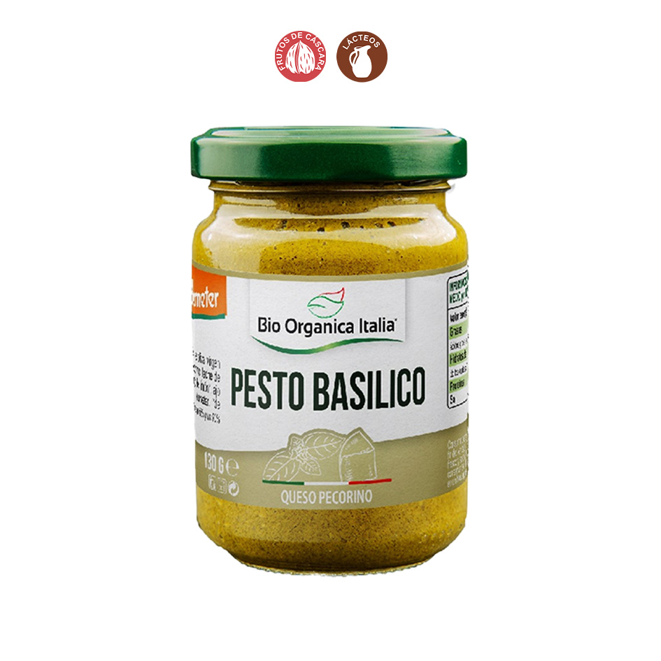 Albahaca* (58%), aceite de oliva virgen extra* (30%), ANACARDOS* (7%), QUESO pecorino * (2%), piñones*, sal, corrector de acidez: (ácido láctico), ajo*, jugo de limón*.
