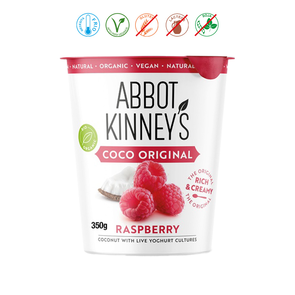 75% leche de coco (45% extracto de coco, agua), puré de frambuesa (17% frambuesa, agua, almidón), almidón, espesante: goma de guar, cultivos lácticos (de cultivo ecológico)