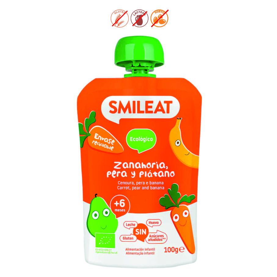 Puré de Pera* (56%), puré de zanahoria* (22%), puré de plátano* (22%), xumo concentrado de limón*. *= Procedente de agricultura ecológica.