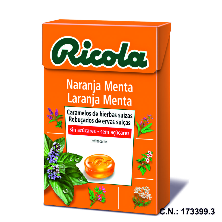 RICOLA CARAMELOS SIN AZUCAR NARANJA MENTA – 50GR.