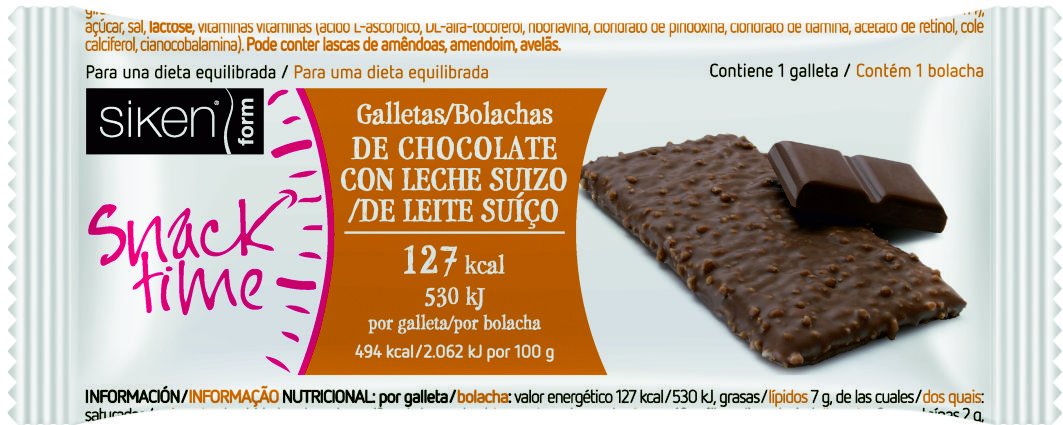 Chocolate con LECHE(69%) [azúcar, manteca de cacao, LECHE entera en polvo, LECHE desnatada en polvo, pasta de cacao, emulgente (lecitina de girasol), aroma], harina de TRIGO, arroz crujiente (azúcar, arroz inflado), harina de maíz, salvado de TRIGO, dextrina de maíz, espesante (E-414), azúcar, sal, LACTOSA, vitaminas (ácido L- ascórbico, DL-alfa-tocoferol, riboflavina, clorhidrato de piridoxina, clorhidrato de tiamina, acetato de retinilo, colecalciferol, cianocobalamina).