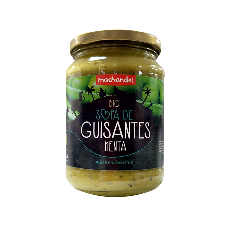 agua, guisantes* (29%), leche de coco*, cebolla*, puerro*, sal marina, almidón de arroz*, zumo de limón*, aceite de colza*, ajo*, pimienta negra*, albahaca*, cebolla en polvo*, menta* verde (<1%), cúrcuma*, nuez moscada*, perejil*, hoja de maggi*, romero*, tomillo*. *= Procedente de agricultura ecológica.