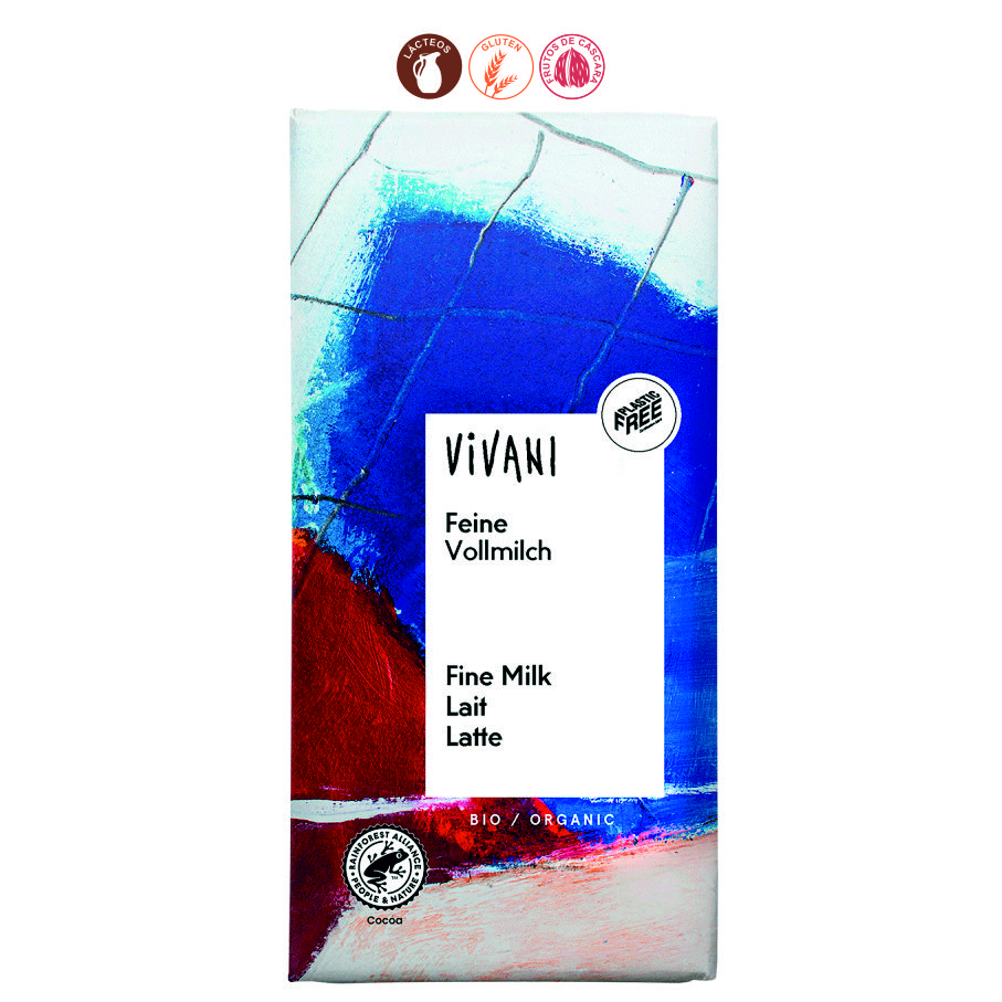 Azúcar integral de caña*, manteca de cacao*, LECHE entera en polvo*, pasta de cacao*, NATA en polvo*, LECHE desnatada en polvo*, extracto de vainilla bourbon*. *=de Cultivo Ecológico Certificado.