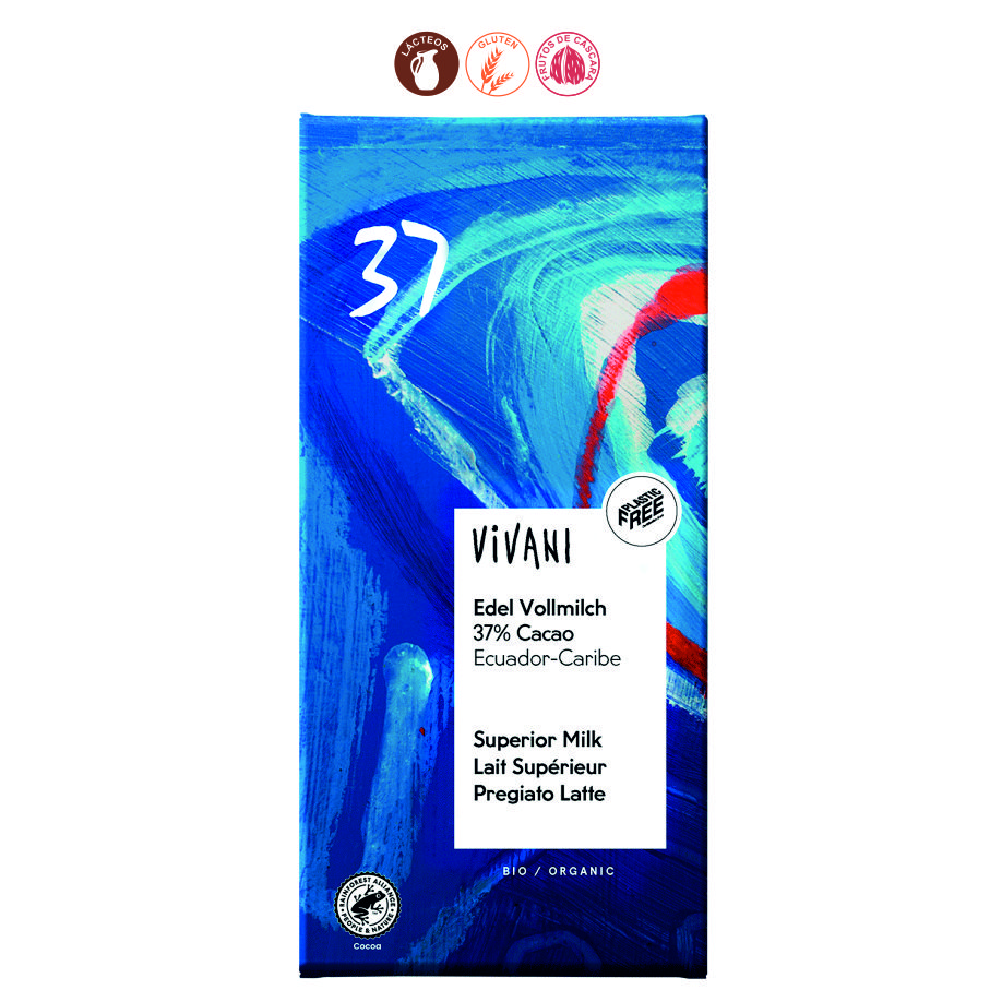 Azúcar integral de caña*, manteca de cacao*, LECHE entera en polvo*, pasta de cacao*, LECHE desnatada en polvo*, extracto de vainilla bourbon*. *=de Cultivo Ecológico Certificado.