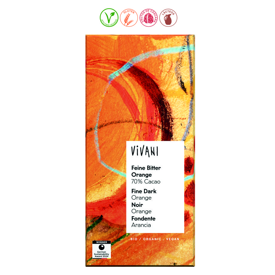 TABLETA CHOCOLATE NEGRO 70% CON NARANJA – 80GR.