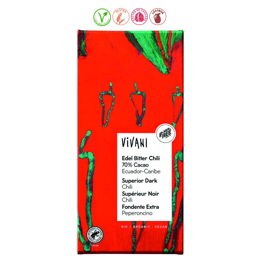 Pasta de cacao*, azúcar de caña integral*, manteca de cacao*, chili*(seco). *=de Cultivo Ecológico Certificado.