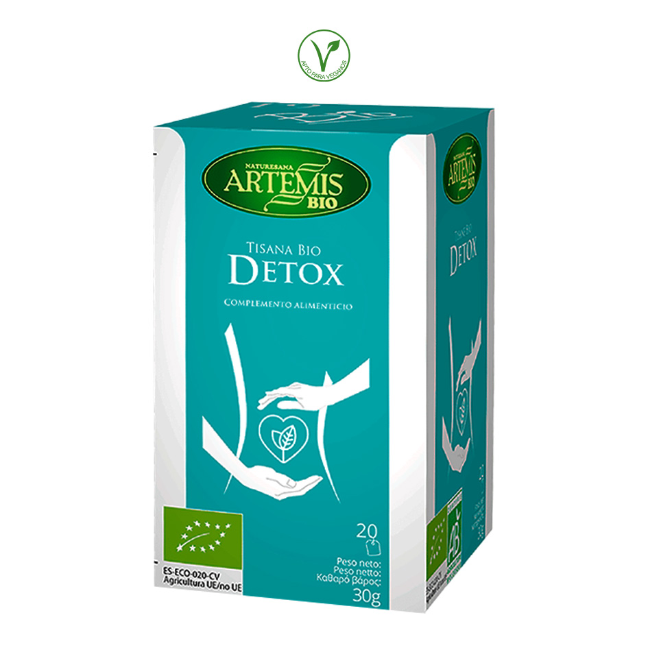 Ingredientes por bolsita: • Diente de león*(taraxacum officinalis web.)(25%) · 375mg. • Ortiga verde*(urtica dioica)(20%) · 300mg. • Té verde*(camellia sinensis)(15%) · 225mg. • Regaliz*(glycyrrhiza glabra L.)(15%) · 225mg. • Cola de caballo*(equisetum arvense)(10%) · 150mg. • Bardana*(arctium lapa)(5%) · 75mg. • Cúrcuma*(curcuma longa)(5%) · 75mg • Alcachofa*(cynara scolimus)(5%) · 75mg. • *= Procedente de agricultura ecológica.