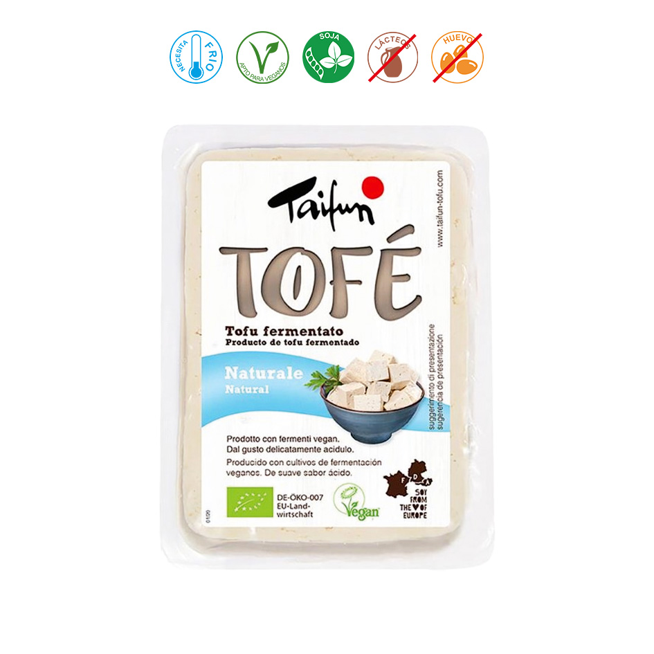 Tofu* (97%) Habas de soja* (55%), agua, agentes coagulantes:cloruro de magnesio, sulfato de calcio), sal marina, azúcar deremolacha*, cultura de yogurt vegano: Str. thermophilus. *= Procedente de agricultura ecológica.