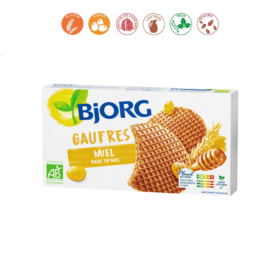 harina de TRIGO semi integral* (29%), jarabe de TRIGO sin refinar* (21,5%), margarina* (aceite de girasol*, manteca de cacao*, agua, emulgente: lecitina de girasol, acidificante: ácido cítrico), azúcar de caña sin refinar* (13%), miel* (12%), agua, emulgente: lecitina de girasol, HUEVO* en polvo, sal marina, gasificante: carbonato sódico y canela*. *= Procedente de agricultura ecológica.