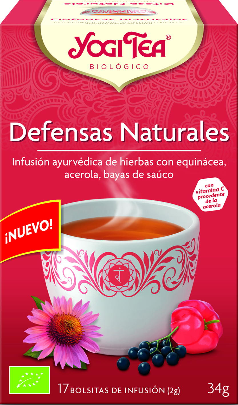 Equinácea*, rosa canina*, zumo de acerola deshidratado*, albahaca*, canela*, jengibre*, cardamomo*, bayas de saúco*, pimienta negra*, moringa*, hibisco*, cáscara de cacao*, regaliz*, hinojo*. *= Procedente de agricultura ecológica.